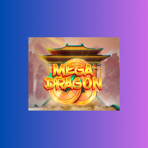 Mega Dragon menampilkan gaya artistik khas Asia Timur, lengkap dengan ukiran naga, ornamen emas, dan latar belakang kuil megah. Dua naga animasi (merah dan hijau) melayang di atas grid dan menjadi elemen penting karena mereka mengaktifkan fitur bonus.