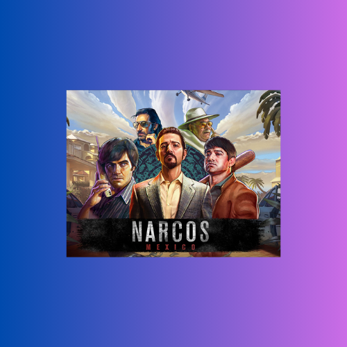 Narcos Mexico mengambil latar dunia kartel narkoba yang berbahaya dan penuh intrik di Meksiko. Desain grafisnya kaya akan detail sinematik dengan latar belakang kota Meksiko yang gelap dan penuh cahaya neon, lengkap dengan karakter-karakter utama dari serial yang diperankan dalam simbol slot.